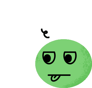 a green smiley face with its tongue out