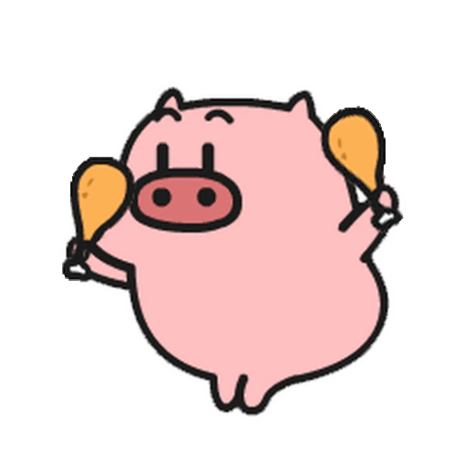 A cute cartoon pig happily holds two delicious chicken drumsticks, ready to enjoy a tasty meal.