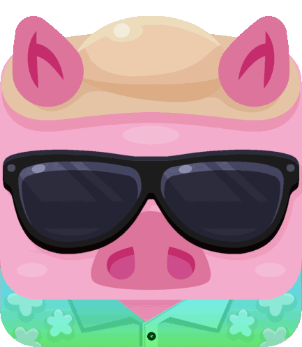 a cartoon pig wearing sunglasses and a green shirt