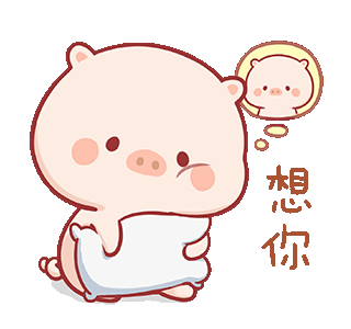 Adorable animated sticker of a cute pink piggy holding a pillow, with a thought bubble saying 'Missing you'.