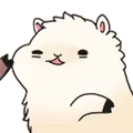A determined, cute white character with a sprout on its head pinches a large pink peach, ready to go.
