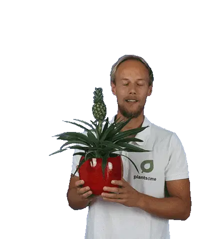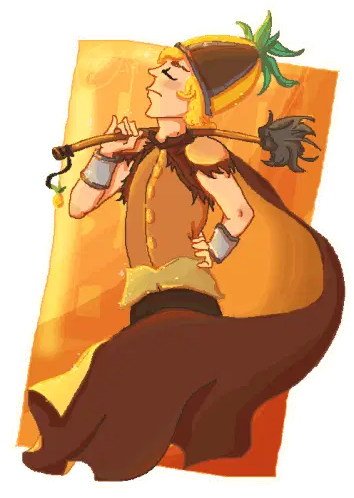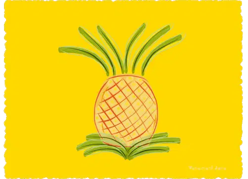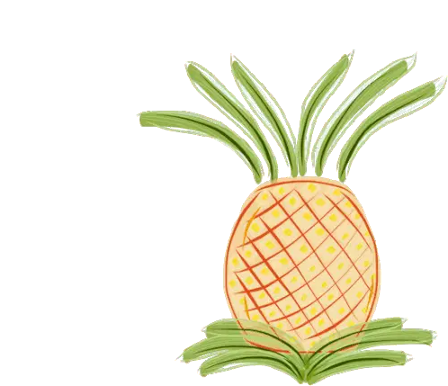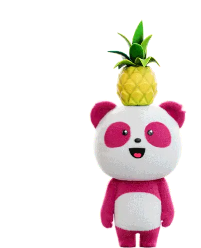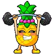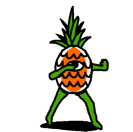 An animated pineapple character with an eye, green limbs, and a crown, performing energetic dance moves, including a dab.
