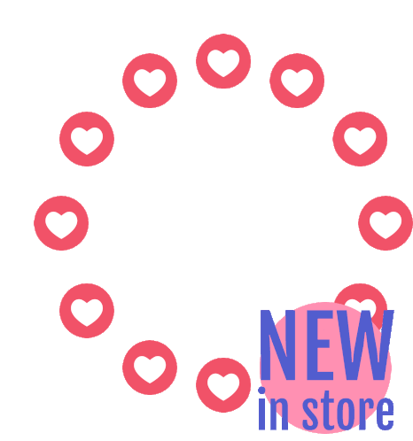 Pins Break The Internet (Pbti) sticker featuring rotating hearts and a 'NEW in store' announcement for fresh stock.