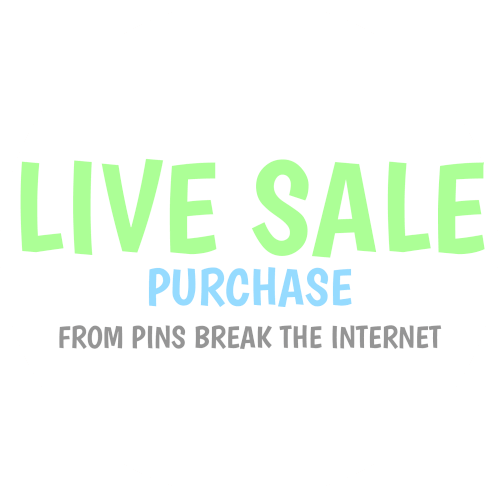Announcing a live sale purchase from Pins Break The Internet, featuring a vibrant display of the event details.