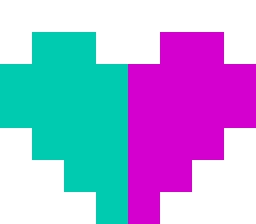 Pipo Lolo's vibrant pixel art heart, featuring teal and magenta colors on a clean white background.