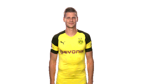 Łukasz Piszczek, the BVB football player, gives a cheerful thumbs-up and smiles, showing his approval.