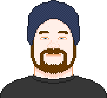 Jonas Barnes in pixel art form, wearing a beanie and sporting a smirk. A Permanent Comedy sticker for fans of stand-up.