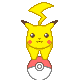 A cute pixel art Pikachu with a lightning bolt and red balloon rolls across the screen in a charming animation.
