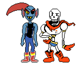 a pixel art drawing of a skeleton and an elf