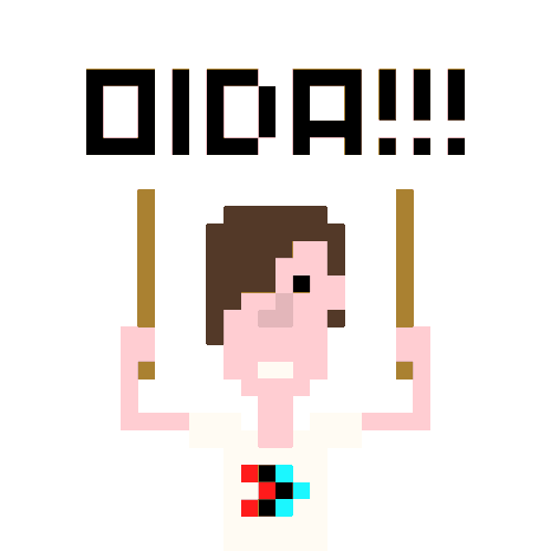Pixel art character holding a sign that exclaims 'OIDA!!!', a common Austrian interjection. A fun, expressive sticker.