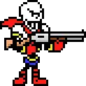 Peppino from Pizza Tower, a pixel art character, crouches ready with a shotgun in hand, showcasing his determined expression.