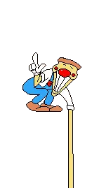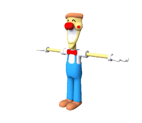 Pizzahead, the clown character from Pizza Tower, with a pizza on his head, as an animated sticker.