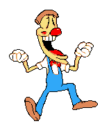 Animated sticker featuring Pizzahead, the clown from Pizza Tower, wearing blue overalls in pixel art style.