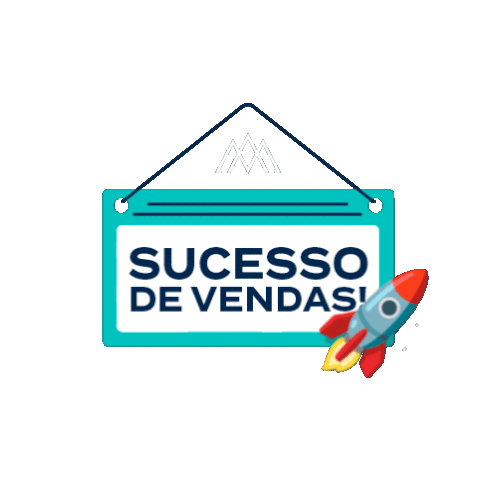 A vibrant 'Sucesso de Vendas' sign with a rocket, representing sales success for Maximo Aldana Construtora.