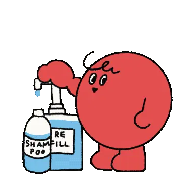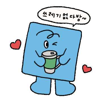 A cute blue cartoon character holds a reusable cup, promoting a trash-free cafe with a Korean speech bubble.