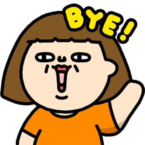 Plastic Thing's 為食妹 (Fatty) waves goodbye with a funny expression, featuring the word 'BYE!' above her head.