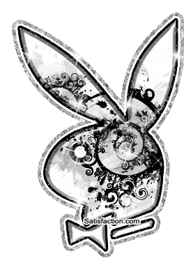 An animated sticker featuring the iconic black and white Playboy Bunny logo, with 'satisfaction.com' subtly displayed at the bottom.