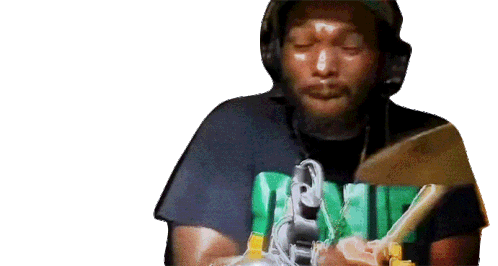 Aston Barrett Jr, the renowned drummer for The Wailers, passionately plays drums while wearing headphones.