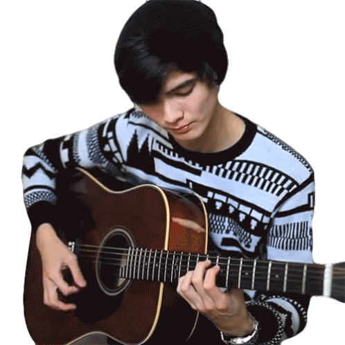 Tim Henson, the talented guitarist, is deeply focused while skillfully playing an acoustic guitar.