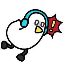 Plop Vivo character dancing energetically with blue headphones, showing surprise with an exclamation mark.
