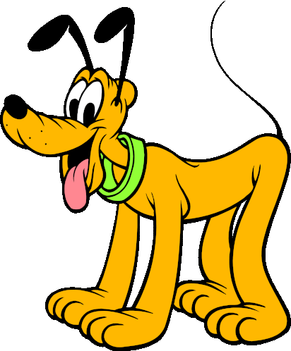 a cartoon dog with a green collar is standing on its hind legs