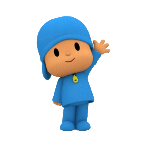 a cartoon character named pocoyo is wearing a blue hat and blue pants