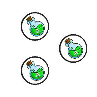 three bottles of green liquid with skulls on them in circles