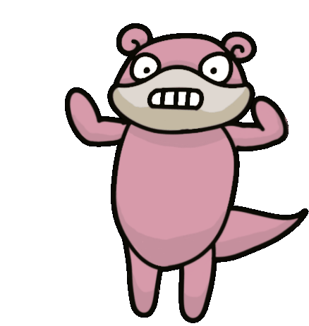 A funny animated sticker of Slowpoke from Pokemon, dancing with exaggerated movements and a wide-eyed expression.