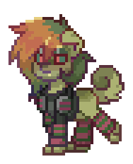 a pixel art drawing of a dog with red hair and glasses