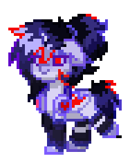 a pixel art drawing of a purple and black pony
