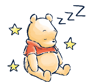 Winnie The Pooh is fast asleep, surrounded by twinkling stars and 'Zzz's, looking cute and tired.