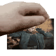 A hand holds a picture of a serious man in a suit, referencing Pookie and Shauna Yellowjackets.