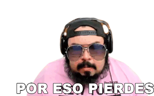Agbean3r, a man with a beard, sunglasses, and headphones, says 'Por Eso Pierdes' (That's Why You Lose).