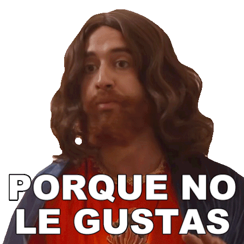 Daniel Tovar, dressed as Jesús, says 'Porque No Le Gustas' (Because they don't like you) with a questioning look.