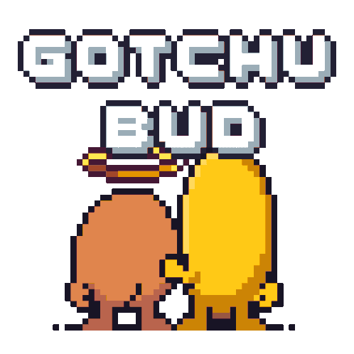a pixel art drawing of a duck with the words gotchu bud written below it