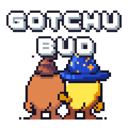 a pixel art of a cartoon character with the words gotchu bud written above it