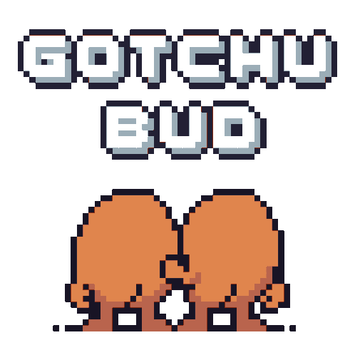 a pixel art illustration with the words gotchu bud written above it