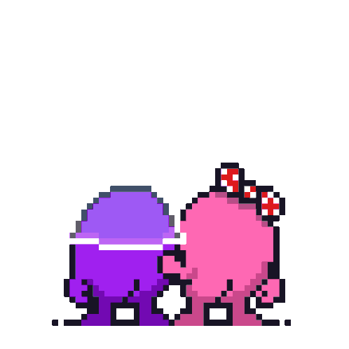 a pixel art drawing of a purple and pink balloon with a bow .