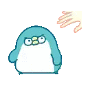 The adorable Pp Penguin, with an annoyed expression, gets a gentle pat on the head from a human hand.