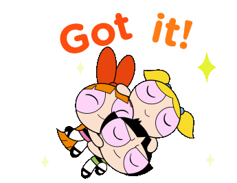 The Powerpuff Girls, Blossom, Bubbles, and Buttercup, share a warm hug with the caption 'Got it!' and sparkling effects.