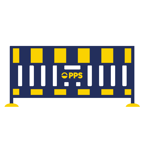 a blue and yellow barrier with pps written on the side