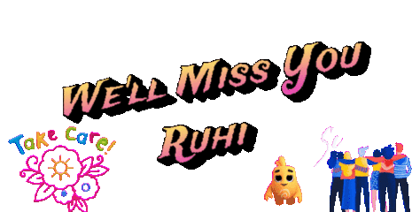 Pratikfam Boogeyman sticker expressing 'We'll Miss You Ruhi' with a heartfelt 'Take Care!' message and cute characters.