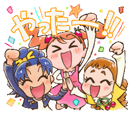 a cartoon drawing of three girls laughing with chinese writing behind them