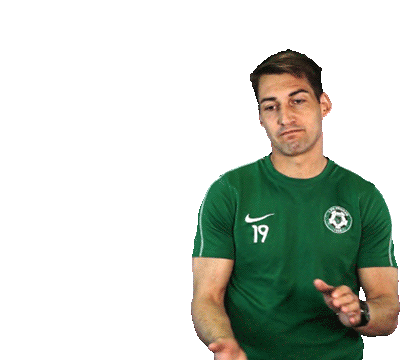A man, likely footballer Rudolf Skácel, in a green football jersey with number 19, gives an ironic clap.