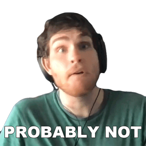 Sam Johnson, wearing headphones, reacts with a clear 'PROBABLY NOT' expression, conveying strong disagreement or refusal.