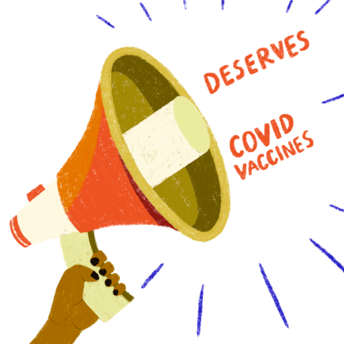 Project Halo sticker featuring a hand holding a megaphone, advocating for equitable access to COVID vaccines.