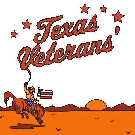 An animated sticker advocating to protect Texas veterans' right to vote how they choose, featuring a cowboy on a horse in a desert.