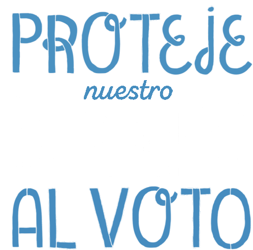An animated text sticker in Spanish, 'Proteje Nuestro Voto' (Protect Our Vote), advocating for voter rights.