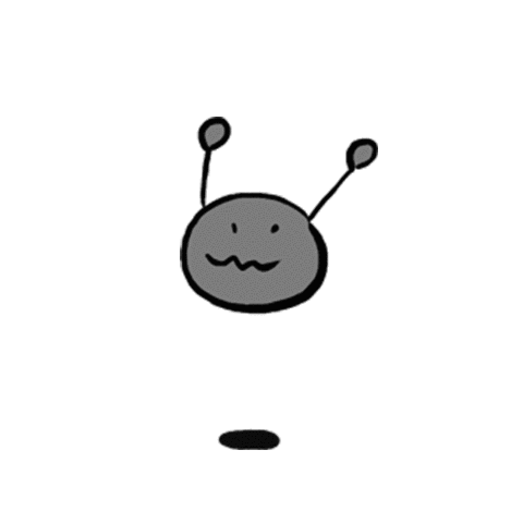 A simple gray blob character with antennae floats, shaking with an angry, squiggly-mouthed expression, indicating extreme frustration.