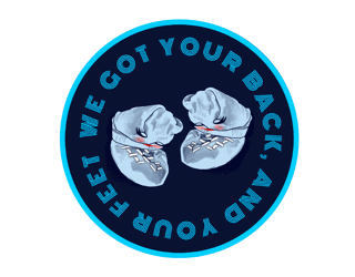 a sticker that says ' feet we got your back ' on it